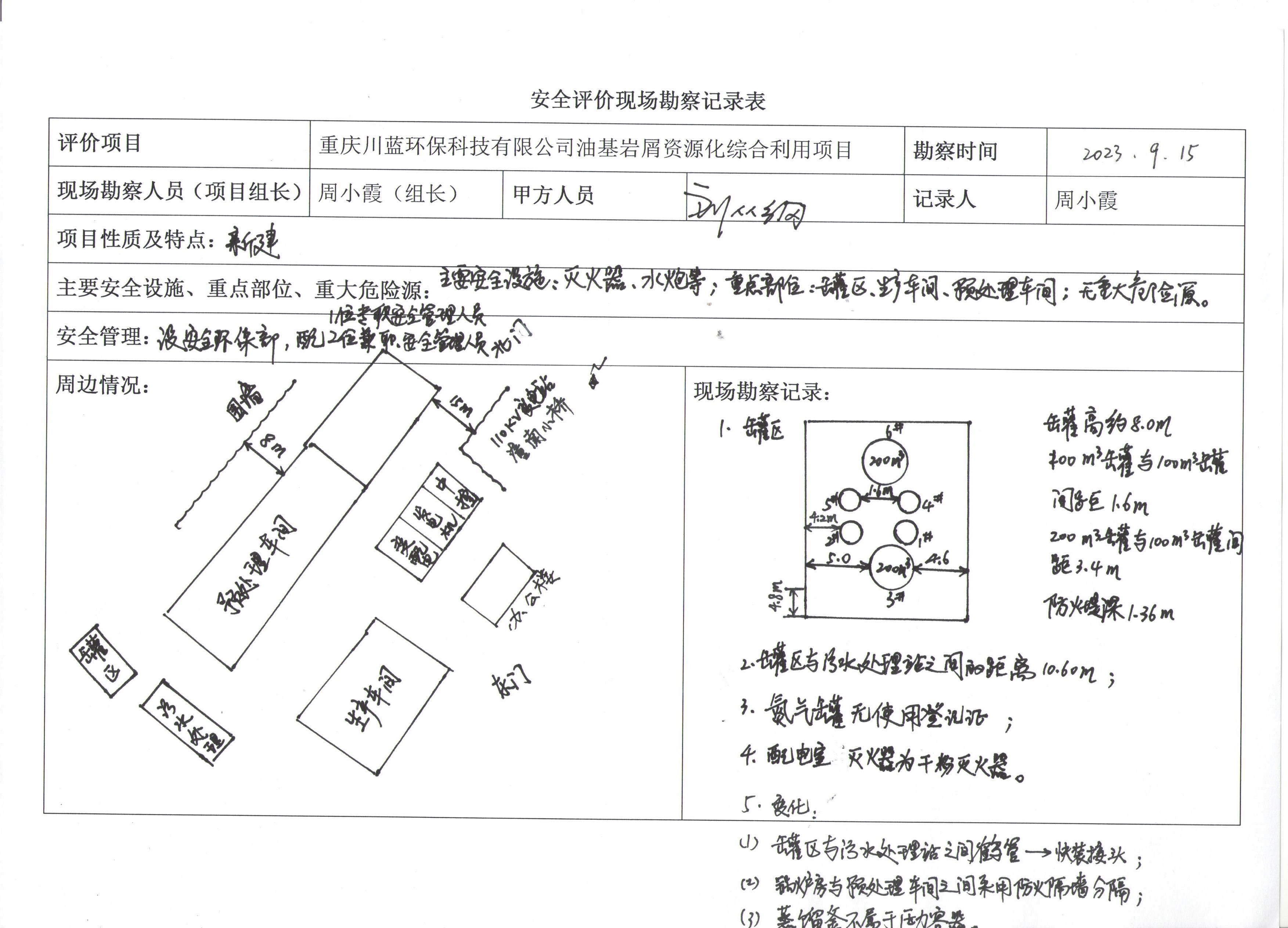 項目名稱 | 重慶川藍環保科技有限公司油基巖屑資源化綜合利用項目安全驗收評價 | 合同編號 | DA(渝)-PJ-20230511 | |||||